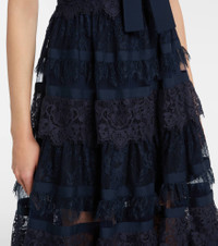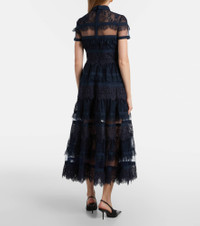 Elie Saab’s impactful designs are proof that the right outfit can make a special occasion all the more memorable. This lace midi dress features a self-tie neck and showcases sheer panels for a charming textural contrast. Product Details - Material: 53% nylon, 22% cotton, 19% polyamide, 6% silk - Care instructions: dry clean - Made in Lebanon - Designer color name: Navy - Item color: blue - Closure: concealed zipped back - Detachable collar - Self-tie collar - Half-lined - Hem: scalloped - Item number: P01103886 Size & Fit - True to size - Cinched waist - Non-stretchy fabric - The model seen in the picture is 178cm-5'10" and wearing a size FR 36