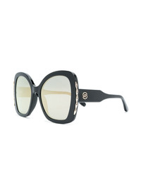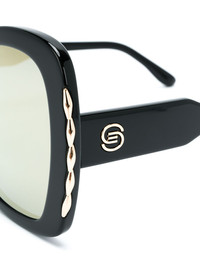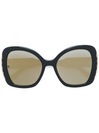trim detail oversized sunglasses Black acetate trim detail oversized sunglasses from Elie Saab featuring a straight bridge, a logo at the temple and straight arms with curved tips. This item comes with a protective case. Made in Italy Composition Metal 100%, Acetate 100% SIZE & FIT Measurement Bridge Width 0.82 in(2.1 cm) Lens Diameter 2.2 in(5.6 cm) Total Width 5.98 in(15.2 cm) Arm Length 5.7 in(14.5 cm)