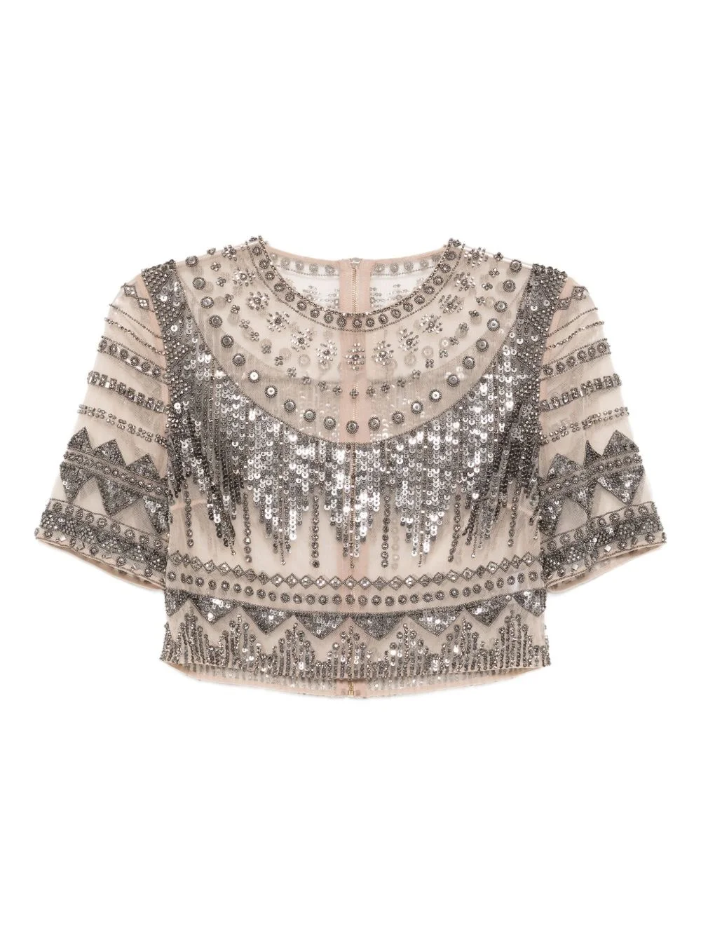 Tulle-art crop top Highlights - Ivory white - Crystal embellishment - Short sleeves Imported Composition Silk 40%, Viscose 27%, Acetate 22%, Polyester 7%, Elastane 4% Washing instructions Dry Clean Only