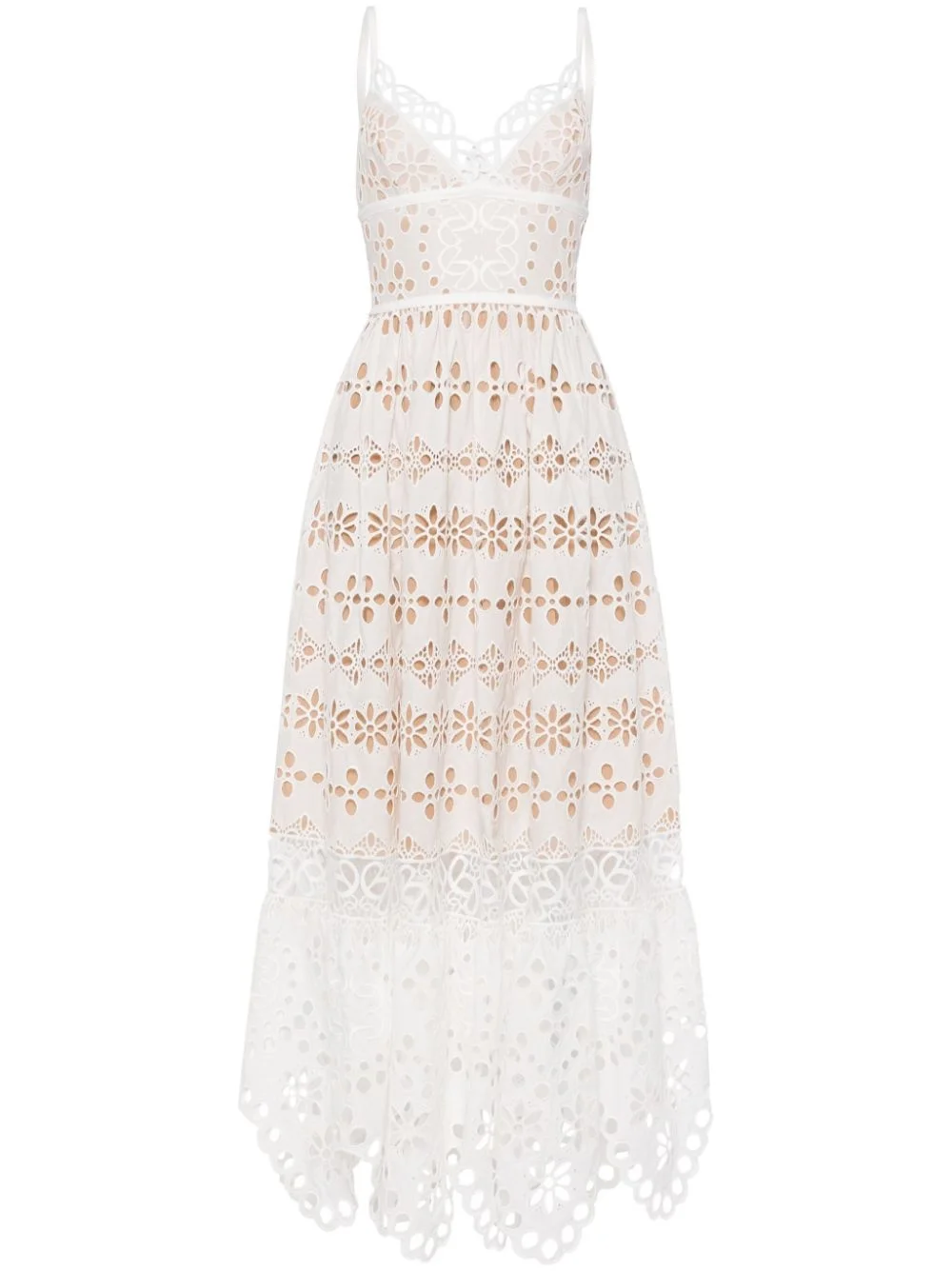 V-neck embroidered maxi dress Highlights - Ivory white - Cotton-silk blend - Embroidered design - V-neck - Sleeveless - Spaghetti straps - Square open back - Scallop hem - Partial lining - Concealed rear zip fastening Imported Composition Cotton 75%, Silk 25%