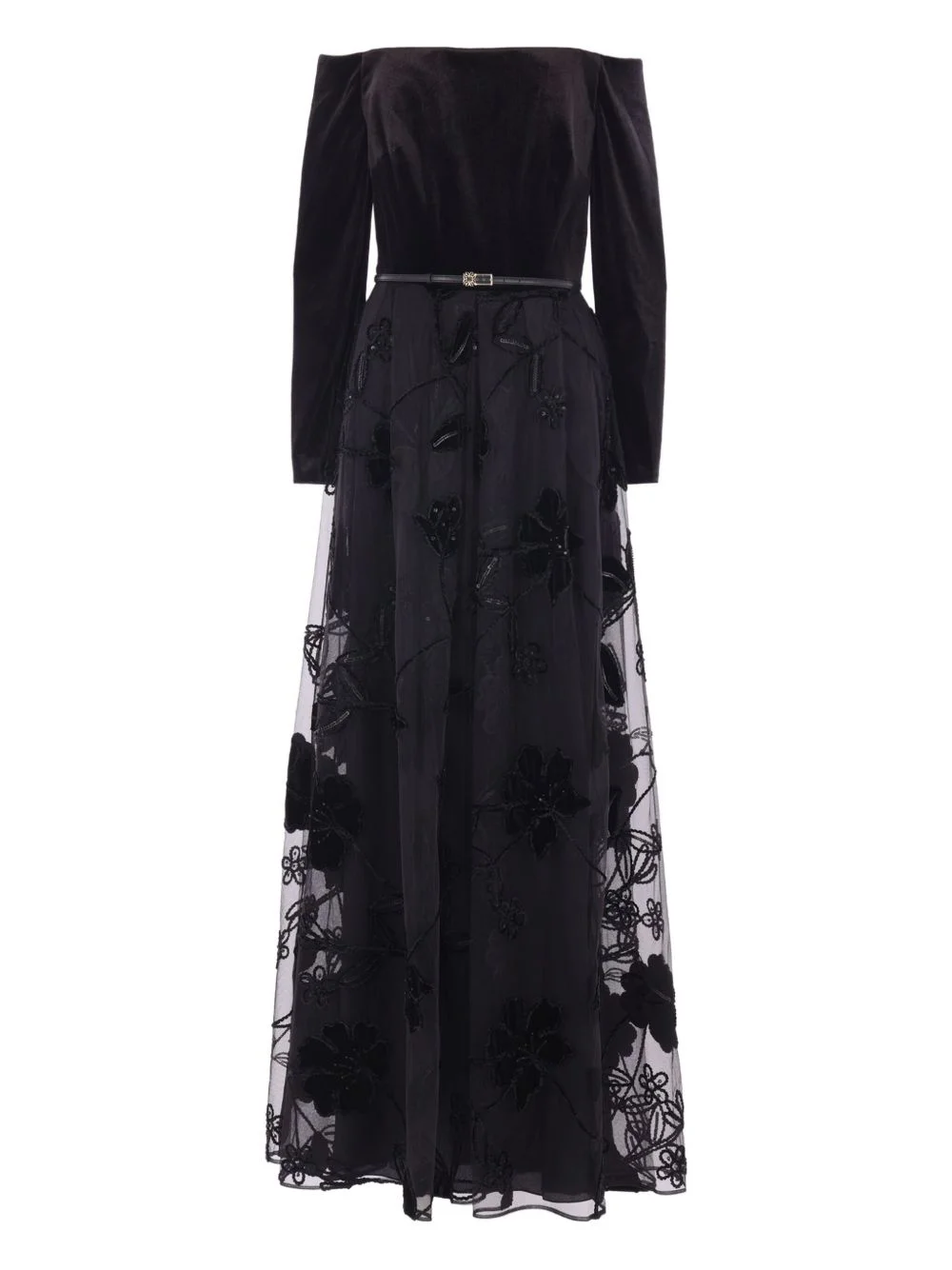 velvet floral-embroidered tulle dress Highlights - Black - Velvet bodice - Tulle skirt - Floral embroidery - Sequin embellishments - Concealed zip fastening Imported Composition Outer: Polyester 62%, Silk 30%, Spandex/Elastane 8% Lining: Silk 100% Washing instructions Read Manufacturer Guidelines