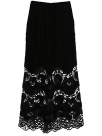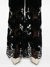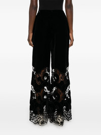 velvet trousers Highlights - Black - Rear zip fastening - Two side inset pockets - Lace detailing Imported Composition Polyester 76%, Viscose 13%, Rayon 8%, Silk 3% SIZE & FIT Model measurements Height 5 ft 10 in(1.77 m) Bust/Chest 32.28 in(82 cm) Hips 35.03 in(89 cm) Waist 25.19 in(64 cm) FittingInformation Designed with a wide-leg cut, these trousers allow for a close fit at the waist and offer a loose and roomy fit over the leg Made from a midweight non-stretch fabric