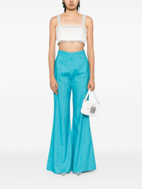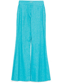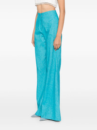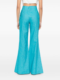 Gin trousers Highlights - Gin blue - Concealed front button, hook and zip fastening - Two side slit pockets Imported Composition Outer: Cotton 56%, Linen/Flax 34%, Silk 10% Lining: Silk 100% SIZE & FIT Model measurements Height 5 ft 10 in(1.77 m) Bust/Chest 31.49 in(80 cm) Hips 35.43 in(90 cm) Waist 25.19 in(64 cm) FittingInformation Designed with a flared hem, these trousers allow for a close fit at the waist with a slim fit over the leg and widening towards the hem Made from a midweight non-stretch fabric