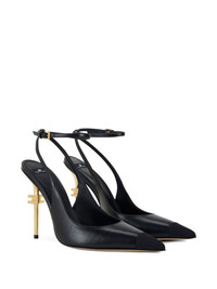 105mm Falcon slingback gold-heel pumps Highlights - Black - Leather - Slingback strap - Gold-tone heel - Pointed toe - Cap toe Made in Italy Composition Sole: Leather 100% Lining: Kid Leather 100% Outer: Kid Leather 100% SIZE & FIT Measurement HEEL 4.13 in(10.5 cm)