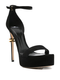 130MM platform stiletto sandals Highlights - Black - Suede upper - Ankle strap - Stiletto heel - Platform sole - Gold-tone embellishment Imported Composition Lining: Calf Leather 100% Outer: Calf Suede 100% Sole: Calf Leather 100% SIZE & FIT Measurement HEEL 5.11 in(13 cm) PLATFORM 1.18 in(3 cm)
