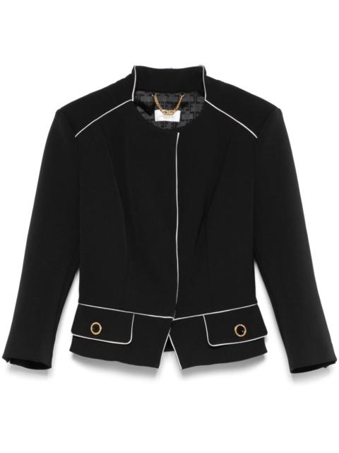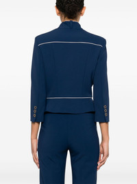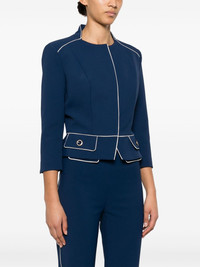 attached-scarf crepe jacket Highlights - Oxford blue - Concealed front press-stud fastening - Shoulder pads - Long sleeves - Faux pocket detail Made in Italy Composition Outer: Polyester 96%, Elastane 4% Lining: Polyester 97%, Elastane 3% SIZE & FIT Model measurements Height 5 ft 10 in(1.77 m) Bust/Chest 31.88 in(81 cm) Hips 36.22 in(92 cm) Waist 24.01 in(61 cm) FittingInformation Designed for a slim fit that sits just away from the body offering a close yet comfortable fit The internal shoulder pads offer a structured shape Made from a midweight stretch fabric, this piece offers elasticity and flexibility when worn Washing instructions Dry Clean Only