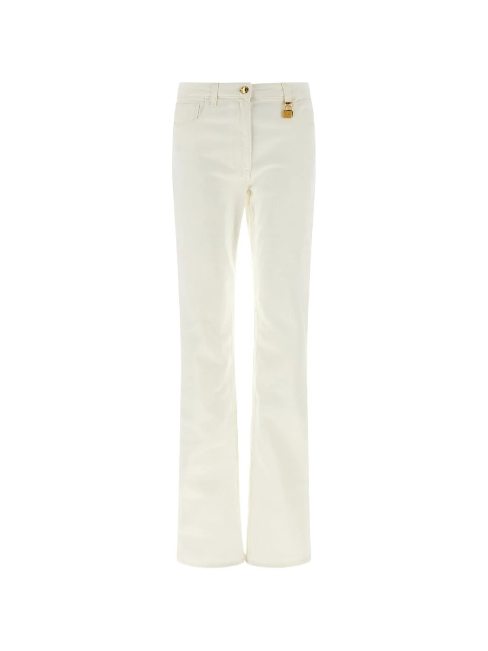 belt-loop padlock-detail trousers Highlights - White - Padlock detail - Five pockets - Zip closure - Button closure Made in Italy Composition Cotton 98%, Elastane 2% Washing instructions Read Manufacturer Guidelines