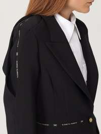 DESCRIPTION - Style: Classic, Elegant - Logo: Contrasting - Model: Single-breasted - Shoulders: Padded, Regular - Sleeves: Long - Bottom: With back slit, With straight hemline - Neck: Lapel - Pockets: With flap - Closure: 1-button - Length: Short jackets - Materials: Crepe - Pattern: Logo, Plain-colored DETAILS AND CARE Composition 95%PL05%EA SIZE AND FIT Sizes not available Size and fit Regular fit Designer code: GI171 110 Giglio Code: H26685 Designer: Elisabetta Franchi Collection: Elisabetta Franchi Woman Category: Clothing Elisabetta Franchi