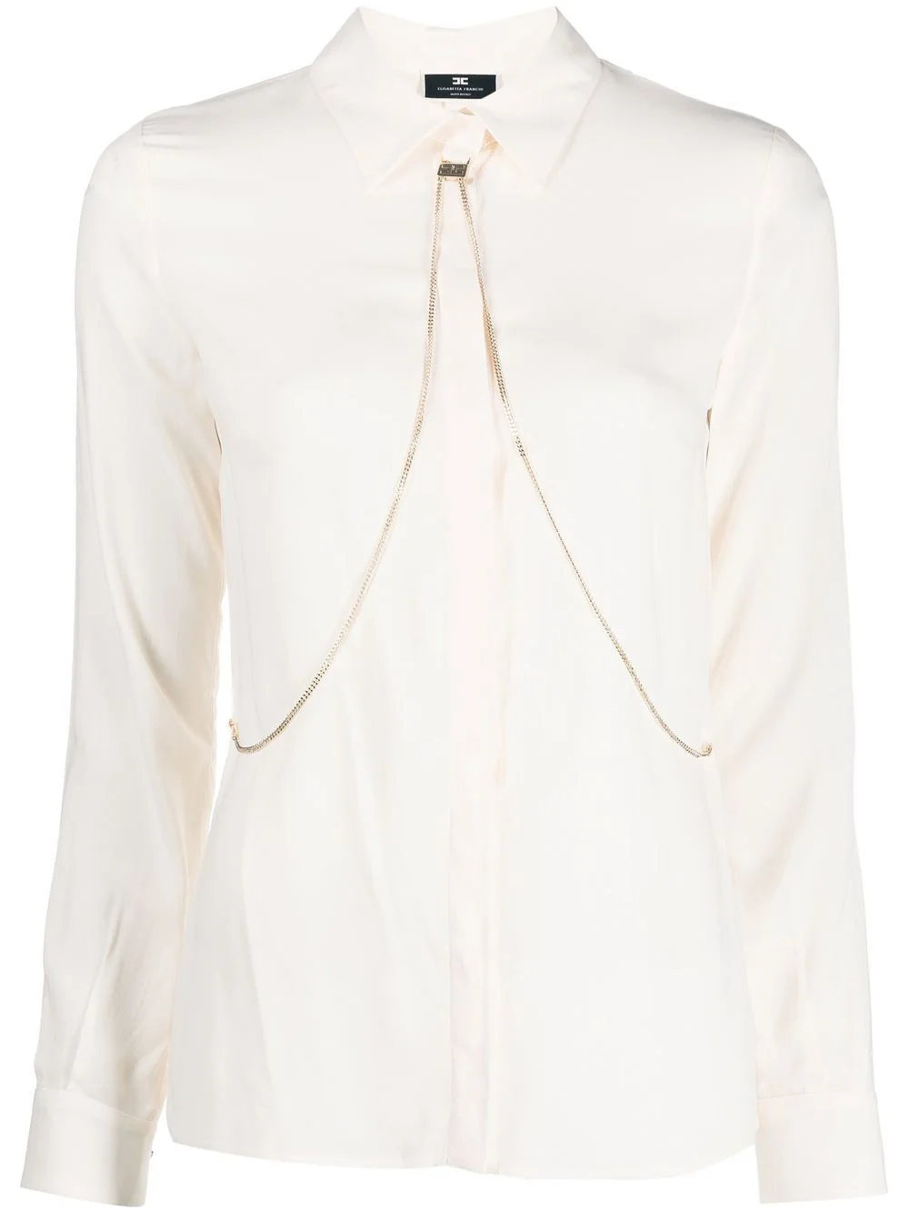 body-chain long-sleeve shirt cream white body chain classic collar long sleeves front button fastening Made in Italy Composition Viscose 95%, Spandex/Elastane 5% Washing instructions Dry Clean Only