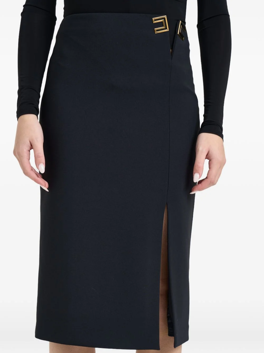 buckle split skirt Highlights - Black - Gold-tone hardware - Split hem Imported Composition Polyester 96%, Elastane 4% Washing instructions Read Manufacturer Guidelines