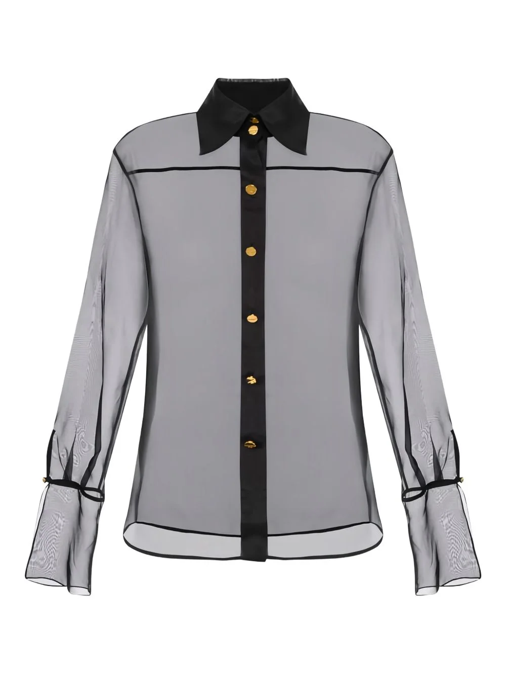 button blouse Highlights - Black - Organza fabric - Gold-tone buttons - Classic collar - Long sleeves Made in Italy Composition Silk 100% Washing instructions Read Manufacturer Guidelines