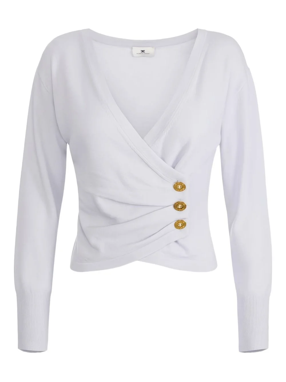 crossover button sweater Highlights - Starlight - Crossover v-neck - Metal buttons - Long sleeves - Draped detail - Soft texture Imported Composition Virgin Wool 70%, Cashmere 30% Washing instructions Read Manufacturer Guidelines