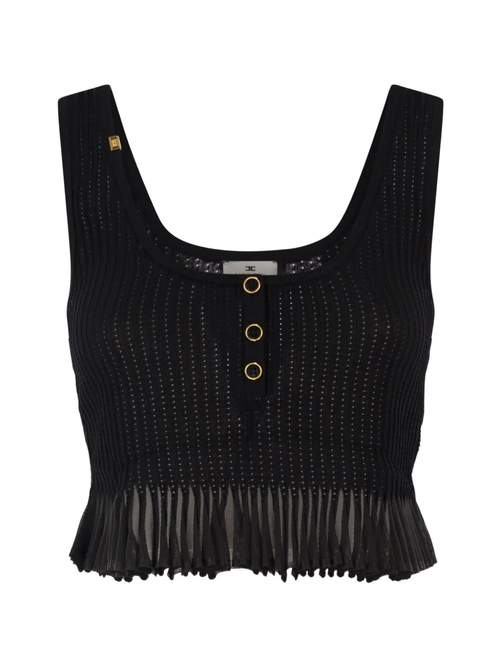 button-detail top Highlights - Black - Round neck - Ribbed knit - Front buttons - Pleated effect Imported Composition Viscose 55%, Polyamide 40%, Polyester 5% Washing instructions Read Manufacturer Guidelines