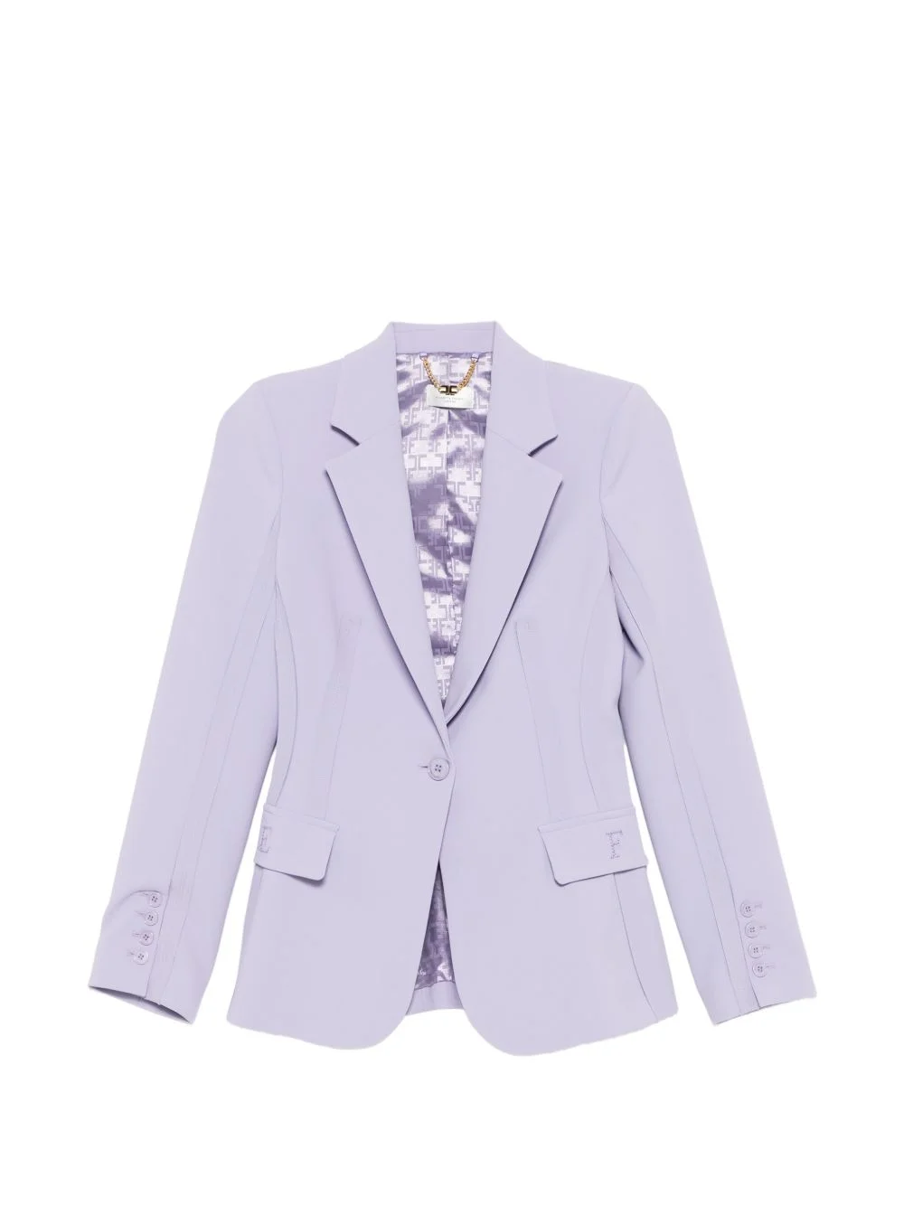 button-embellished blazer Highlights - Lilac - Button fastening - Flap pockets - Buttoned cuffs - Patterned lining - Single-breasted Made in Italy Composition Outer: Polyester 96%, Elastane 4% Lining: Polyester 92%, Elastane 8% Washing instructions Hand Wash
