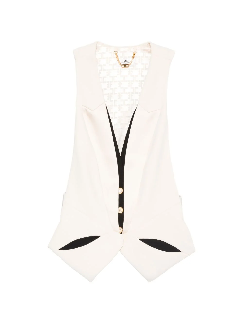 button sleeveless waistcoat Highlights - Cream - Gold-tone buttons - Sleeveless - Cut-out detail - V-neck - Button closure Made in Italy Composition Outer: Polyester 95%, Elastane 5% Lining: Polyester 92%, Elastane 8% Washing instructions Dry Clean Only