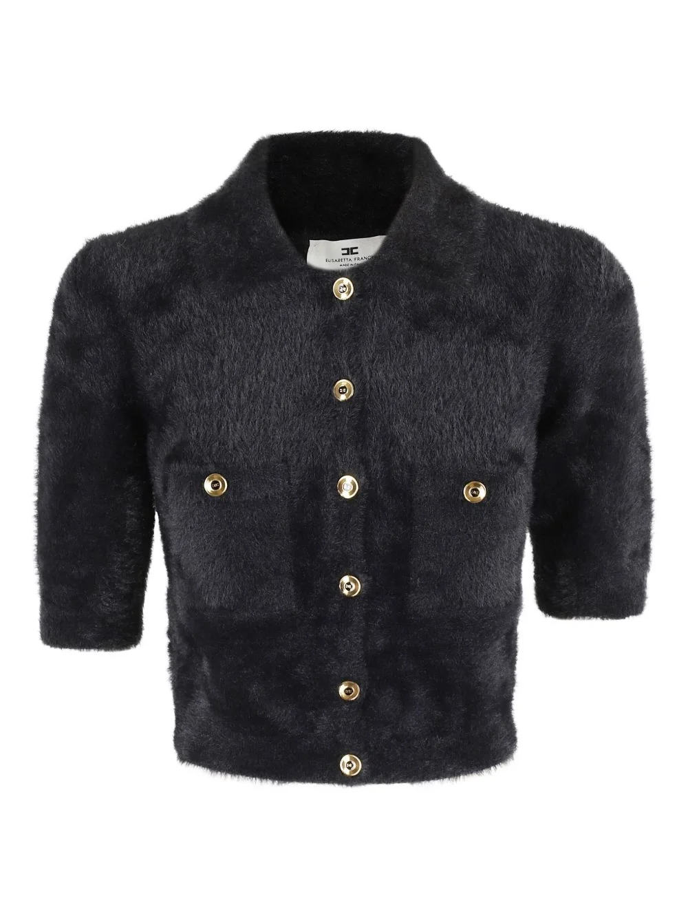 buttoned cardigan Highlights - Black - Gold-tone buttons - Short sleeves - Collared Imported Composition Polyamide 100% Washing instructions Read Manufacturer Guidelines
