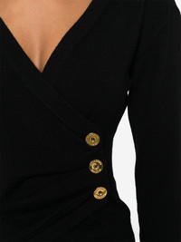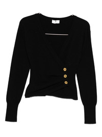 buttoned wrap sweater Highlights - Black - Wrap design - V-neck - Long sleeves - Button fastening - Ribbed cuffs Imported Composition Virgin Wool 70%, Cashmere 30% SIZE & FIT Model measurements Height 5 ft 11 in(1.8 m) Bust/Chest 31.49 in(80 cm) Hips 36.61 in(93 cm) Waist 24.4 in(62 cm) Washing instructions Read Manufacturer Guidelines