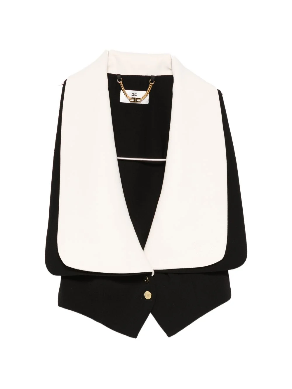 contrasting-collar waistcoat Highlights - Black/light beige - Contrasting collar - Gold-tone hardware - Button fastening - V-neck Made in Italy Composition Outer: Polyester 98%, Elastane 2% Lining: Viscose 100% Washing instructions Dry Clean Only