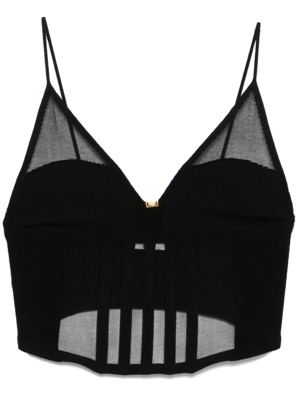 corset-style top Highlights - Black - Concealed side zip fastening - V-neck - Boned bodice - Semi-sheer panels Made in Italy Composition Cotton 100% SIZE & FIT Model measurements Height 5 ft 10 in(1.78 m) Bust/Chest 33.46 in(85 cm) Hips 36.22 in(92 cm) Waist 23.22 in(59 cm) FittingInformation Designed for a close fit throughout Made from a midweight non-stretch fabric, this piece offers minimal elasticity when worn Washing instructions Dry Clean Only