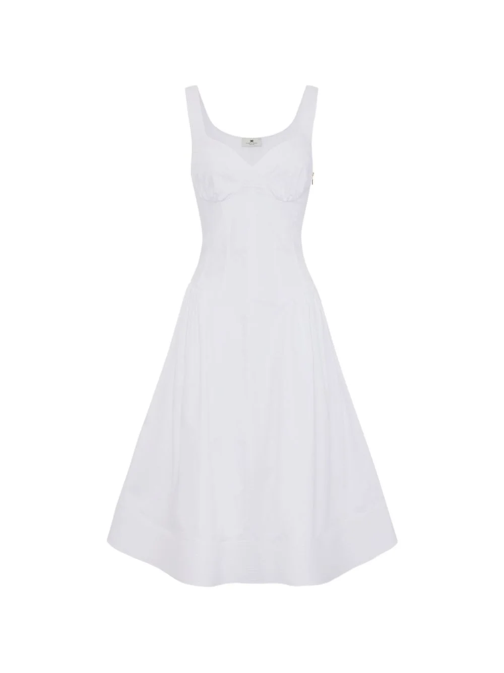 cotton gathered midi dress Highlights - White - Bustier construction - Topstitching - Gathers - Wide skirt - Hoop petticoat Imported Composition Cotton 98%, Spandex/Elastane 2% Washing instructions Read Manufacturer Guidelines