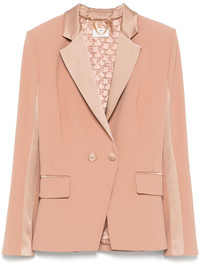 crepe blazer Highlights - Blush beige - Double-breasted button fastening - Long sleeves - Two side flap pockets - Logo-jacquard lining Made in Italy Composition Outer: Polyester 95%, Acetate 82%, Viscose 18%, Elastane 5% Lining: Polyester 92%, Elastane 8% SIZE & FIT Model measurements Height 5 ft 10 in(1.77 m) Bust/Chest 33.07 in(84 cm) Hips 37 in(94 cm) Waist 24.8 in(63 cm) FittingInformation Designed for a slim fit that sits just away from the body offering a close yet comfortable fit The internal shoulder pads offer a structured shape Made from a midweight stretch fabric, this piece offers elasticity and flexibility when worn Washing instructions Dry Clean Only