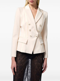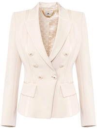 crepe satin blazer Highlights - Beige - Double-breasted button fastening - Two side flap pockets - Peak lapels - Long sleeves Made in Italy Composition Outer: Satin 100%, Polyester 96%, Elastane 4% Lining: Satin 100% SIZE & FIT FittingInformation Designed for a slim fit that sits just away from the body offering a close yet comfortable fit The internal shoulder pads offer a structured shape Made from a midweight stretch fabric, this piece offers elasticity and flexibility when worn Washing instructions Read Manufacturer Guidelines