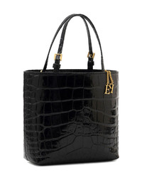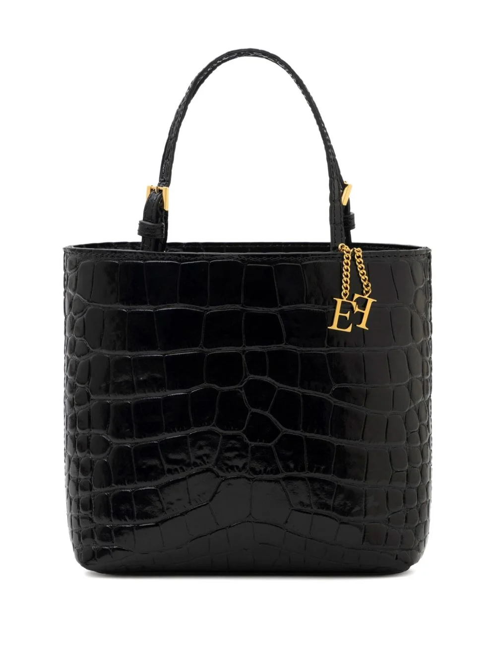 croco-embossed mini tote bag Highlights - Black - Embossed crocodile pattern - Gold-tone logo charm - Double top handles - Open-top design Made in Italy Composition Outer: Leather 100%