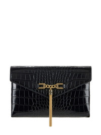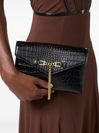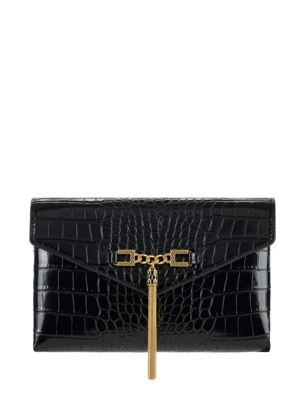 tassel-embellishment clutch bag Highlights - Black - Crocodile effect - Gold-tone hardware - Tassel embellishment Imported Composition Polyurethane 60%, Polyester 40% SIZE & FIT Measurement DEPTH 1.37 in(3.5 cm) HEIGHT 5.51 in(14 cm) WIDTH 8.66 in(22 cm)