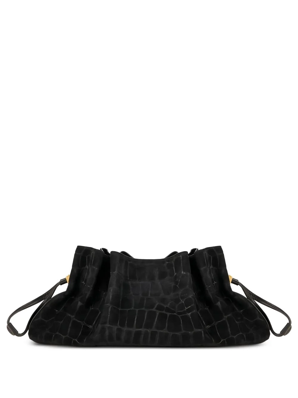 crocodile-effect clutch bag Highlights - Black - Crocodile print - Drawstring - Gold-tone hardware Made in Italy Composition Outer: Calf Leather 100% SIZE & FIT Measurement DEPTH 3.54 in(9 cm) HEIGHT 5.11 in(13 cm) WIDTH 15.74 in(40 cm)