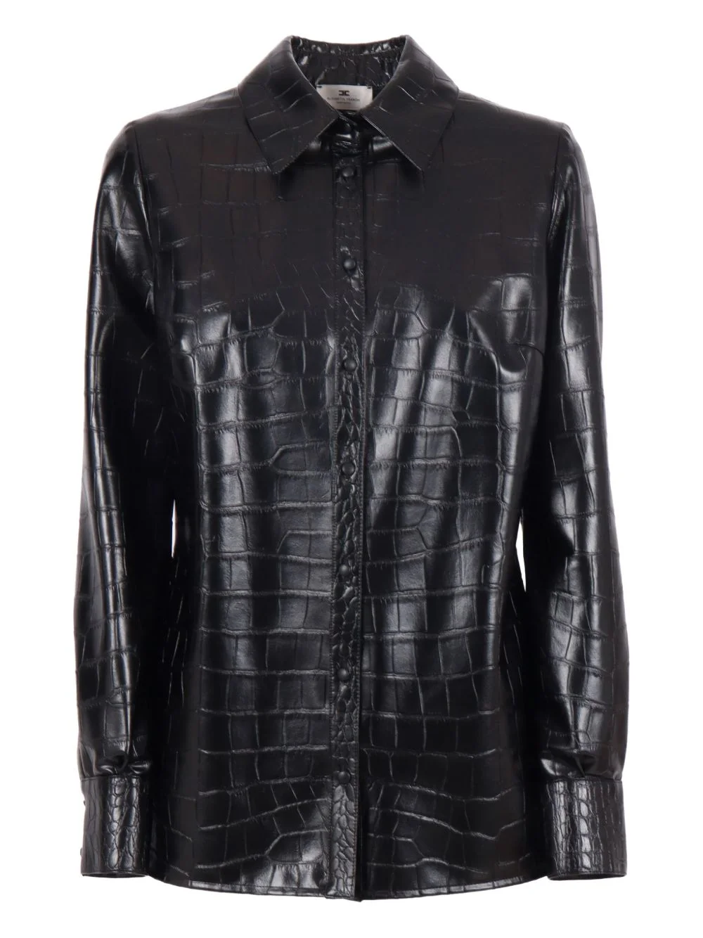 crocodile-effect shirt Highlights - Black - Crocodile effect - Button fastening - Collared neck - Long sleeves Made in Italy Composition Polyurethane 53%, Polyester 47% Washing instructions Read Manufacturer Guidelines