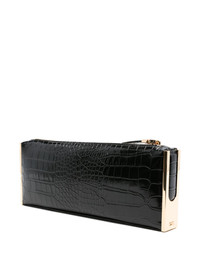 crocodile-effect zip clutch