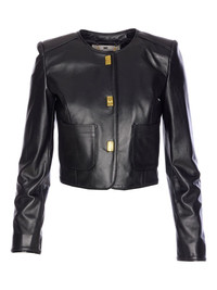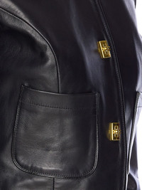 hook-fastening leather jacket Highlights - Black - Leather - Gold-tone hook fastening - Crew neck - Long sleeves - Welt pockets Made in Italy Composition Outer: Leather 100% Lining: Satin 100% Washing instructions Specialist Cleaning