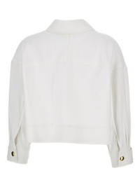 gold button patch pocket jacket Highlights - White - Point collar - Gold-tone buttons - Patch pockets - Dropped shoulders - Buckle cuffs Made in Italy Composition Viscose 98%, Spandex/Elastane 2% Washing instructions Read Manufacturer Guidelines