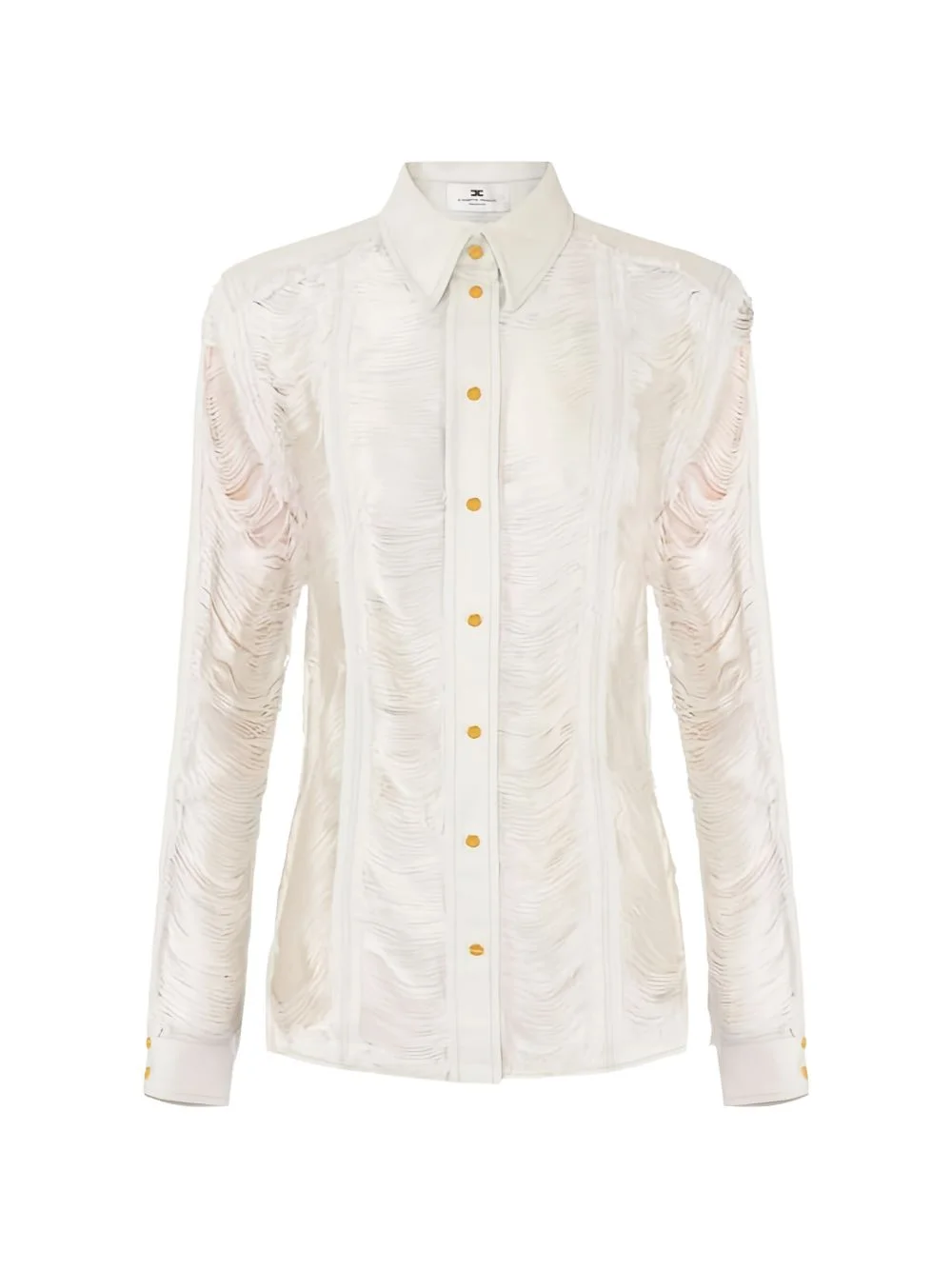 distressed fringed shirt Highlights - Shiny trilobato - Classic collar - Long sleeves - Cuffs - Fringe details Imported Composition Cotton 52%, Polyester 48% Washing instructions Read Manufacturer Guidelines