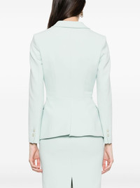 double-breasted blazer Observing classical tailoring principles, this blazer from Elisabetta Franchi is cut in Italy to a double-breasted front, peak lapels and two front flap pockets. It's complete with matching-hued buttons trimmed with gold-tone hardware for a refinished finish. Highlights - Mint green - Stretch-design - Crepe texture - Peak lapels - Shoulder pads - Long sleeves with faux buttoned cuffs - Dart detailing - Two front flap pockets - American rear vent - Logo-jacquard lining - Logo-embossed buttons - Double-breasted button fastening Made in Italy Composition Lining: Polyester 100% Outer: Polyester 96%, Spandex/Elastane 4% SIZE & FIT Model measurements Height 5 ft 11 in(1.8 m) Bust/Chest 31.49 in(80 cm) Hips 36.22 in(92 cm) Waist 25.59 in(65 cm) FittingInformation Designed for a slim fit that sits just away from the body offering a close yet comfortable fit The internal shoulder pads offer a structured shape Made from a midweight fabric This piece fits true to size – take your usual size Washing instructions Hand Wash