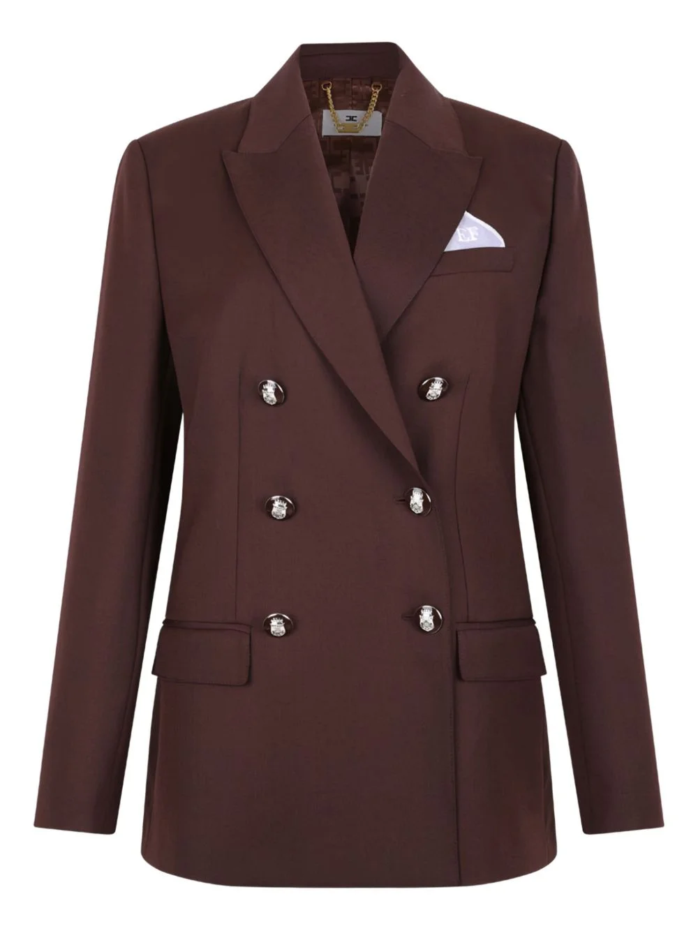 double-breasted buttoned blazer Highlights - Brown - Double-breasted fastening - Decorative buttons - Flap pockets - Gold-tone internal logo plaque Imported Composition Outer: Polyester 55%, Virgin Wool 45% Lining: Satin 100% Washing instructions Read Manufacturer Guidelines