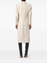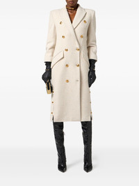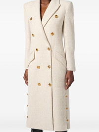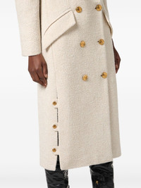 double-breasted coat Highlights - Off-white - Boucle design - Wool-blend - Double-breasted button fastening - Gold-tone buttons - Shoulder pads - Side button detailing Made in Italy Composition Wool 56%, Fabric 29%, Polyester 15% Washing instructions Read Manufacturer Guidelines