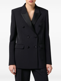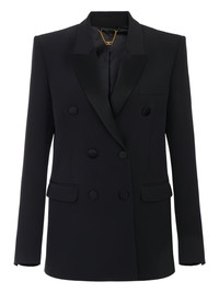 double-breasted jacket Highlights - Black - Peaked lapels - Double-breasted - Button fastening - Applied flaps Made in Italy Composition Polyester 95%, Elastane 5% Washing instructions Read Manufacturer Guidelines