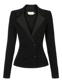 double-breasted lapels knit jacket Highlights - Black - Double-breasted - Lapels - Long sleeves - Button fastening - Ribbed knit - Snap buttons Imported Composition Viscose 72%, Polyester 28% Washing instructions Read Manufacturer Guidelines