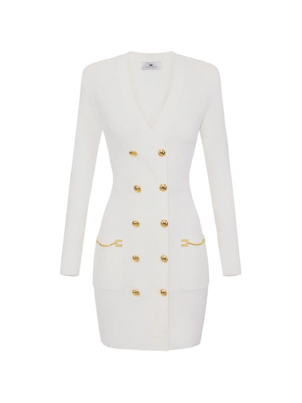 double-breasted mini dress Highlights - White - V-neck - Gold-tone hardware - Double-breasted - Front patch pockets - Chain detail Imported Composition Viscose 68%, Polyester 27%, Polyamide 5% Washing instructions Read Manufacturer Guidelines