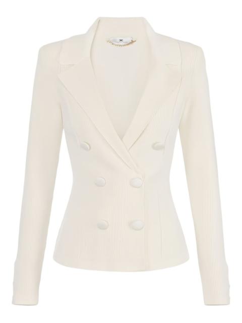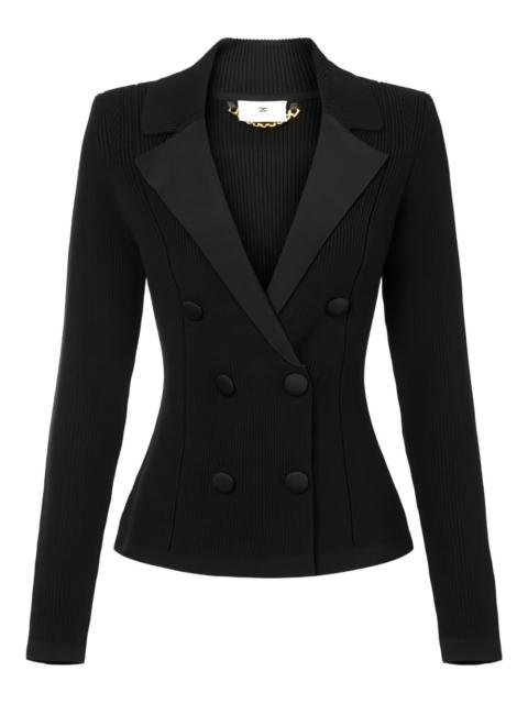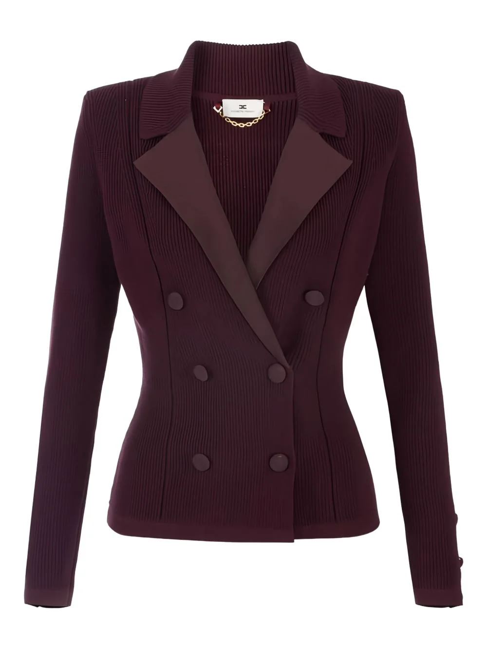double-breasted ribbed-knit blazer Highlights - Merlot - Button detail - Long sleeves - Ribbed knit Imported Composition Viscose 72%, Polyester 28% Washing instructions Read Manufacturer Guidelines