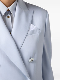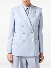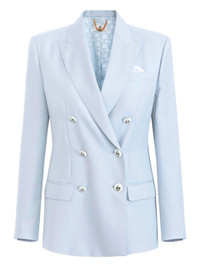 double-breasted tailored blazer Highlights - Light blue - Notch lapel - Peak pocket - Metallic button detailing - Fully lined - Tailored fit Made in Italy Composition Polyester 55%, Virgin Wool 45% Washing instructions Read Manufacturer Guidelines