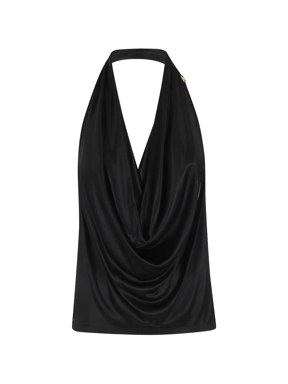 draped halterneck top Highlights - Black - Draped - Halterneck - Sleeveless Imported Composition Viscose 100% Washing instructions Read Manufacturer Guidelines