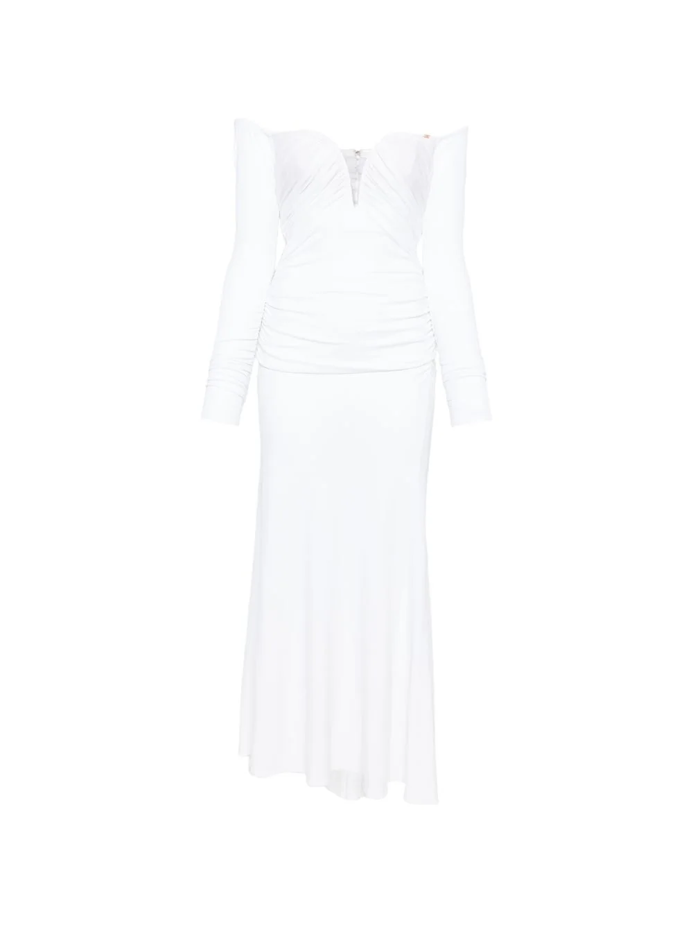 draped long-sleeved midi dress Highlights - White - Draped detailing - Long sleeves - Sweetheart neck - Floor-length Made in Italy Composition Viscose 95%, Elastane 5% Washing instructions Read Manufacturer Guidelines
