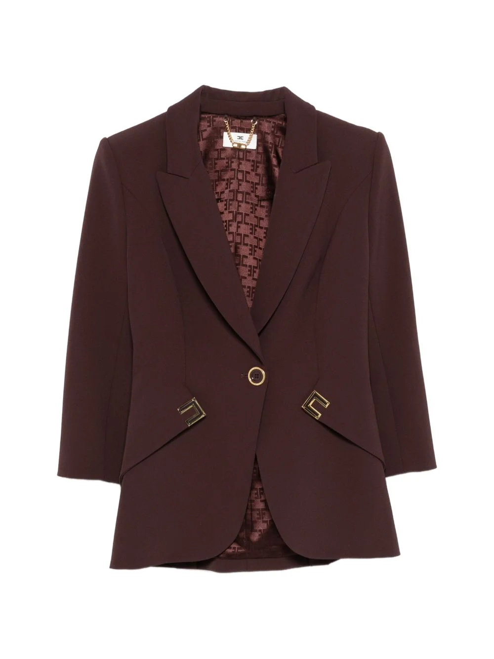 crepe blazer Highlights - Brown - Peak lapels - Logo plaque - Front button fastening - Three-quarter length sleeves Made in Italy Composition Outer: Polyester 96%, Spandex/Elastane 4% Lining: Polyester 92%, Elastane 8% Washing instructions Dry Clean Only