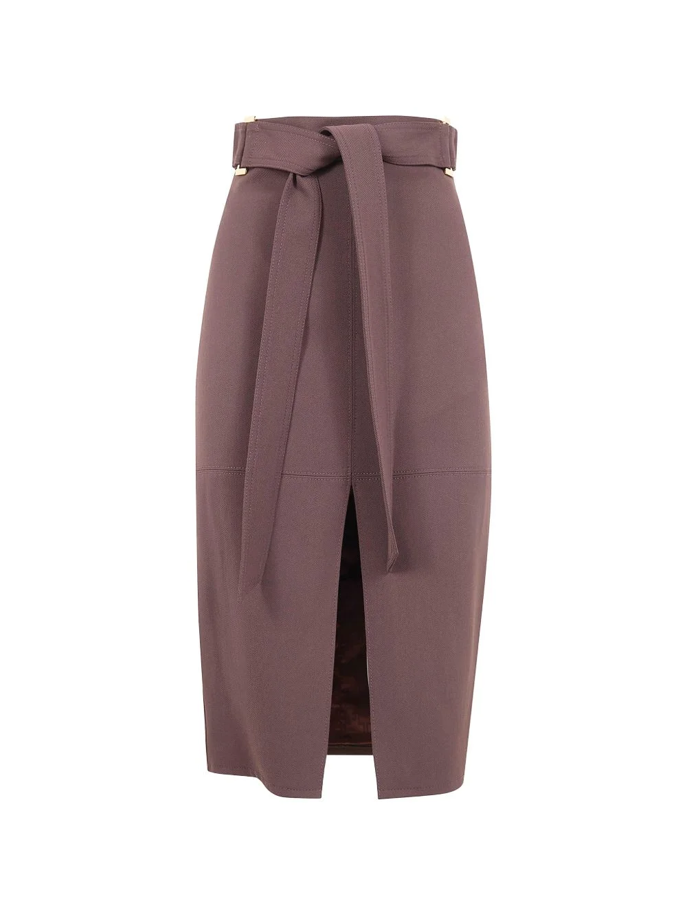 belted midi skirt Highlights - Cocoa brown - Belted waist - Rear zip fastening - Front slit - Tonal stitching Imported Composition Viscose 100% Washing instructions Read Manufacturer Guidelines