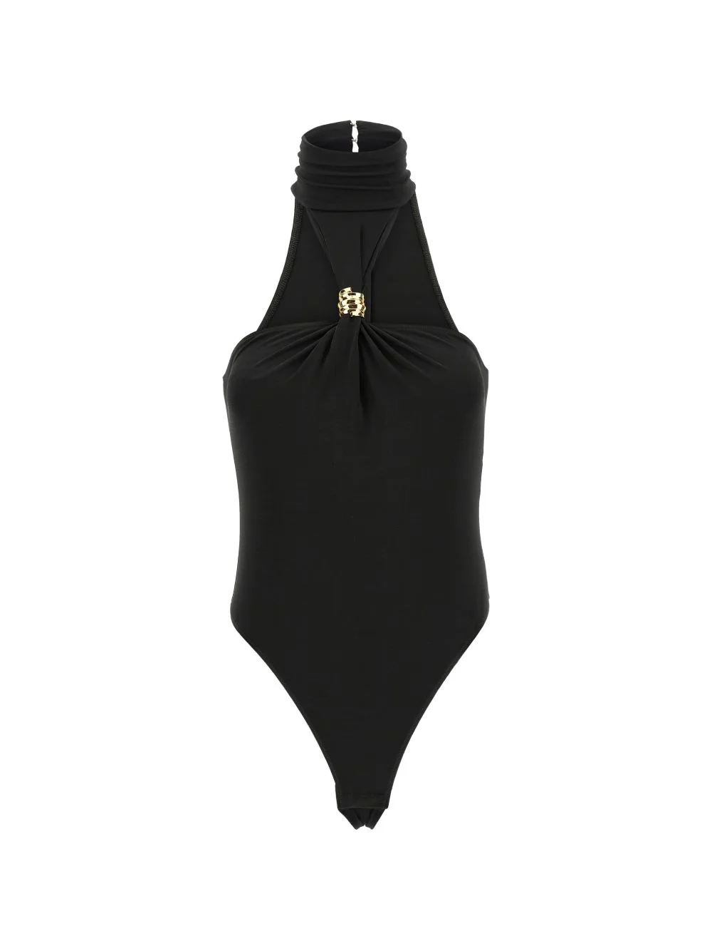 high-neck bodysuit Highlights - Black - High neck - Jewel detail - Back zip closure - Snap buttons - Just a reminder that this piece must be tried on over your own garments. Made in Italy Composition Viscose 95%, Spandex/Elastane 5% Washing instructions Read Manufacturer Guidelines