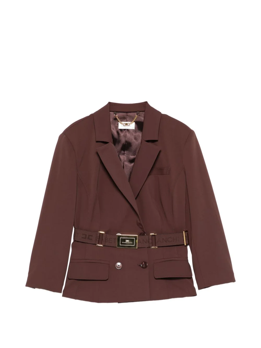 belted double-breasted blazer Highlights - Brown - Logo-buckle belt - Double-breasted - Notched lapels - Two front flap pockets - Button fastening Made in Italy Composition Outer: Polyamide 90%, Polyester 70%, Elastodiene 30%, Elastane 10% Lining: Polyester 97%, Elastane 3% Washing instructions Dry Clean Only