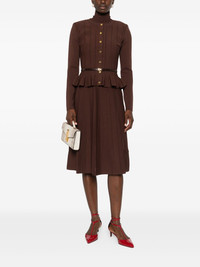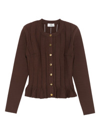 pleated button cardigan Highlights - Brown - Pleated hem - Button fastening - Ribbed texture - Long sleeves - Round neck Imported Composition Viscose 53%, Polyamide 42%, Polyester 5% SIZE & FIT Model measurements Height 5 ft 10 in(1.77 m) Bust/Chest 32.28 in(82 cm) Hips 35.03 in(89 cm) Waist 25.19 in(64 cm) Washing instructions Read Manufacturer Guidelines