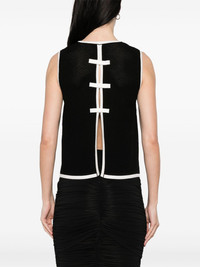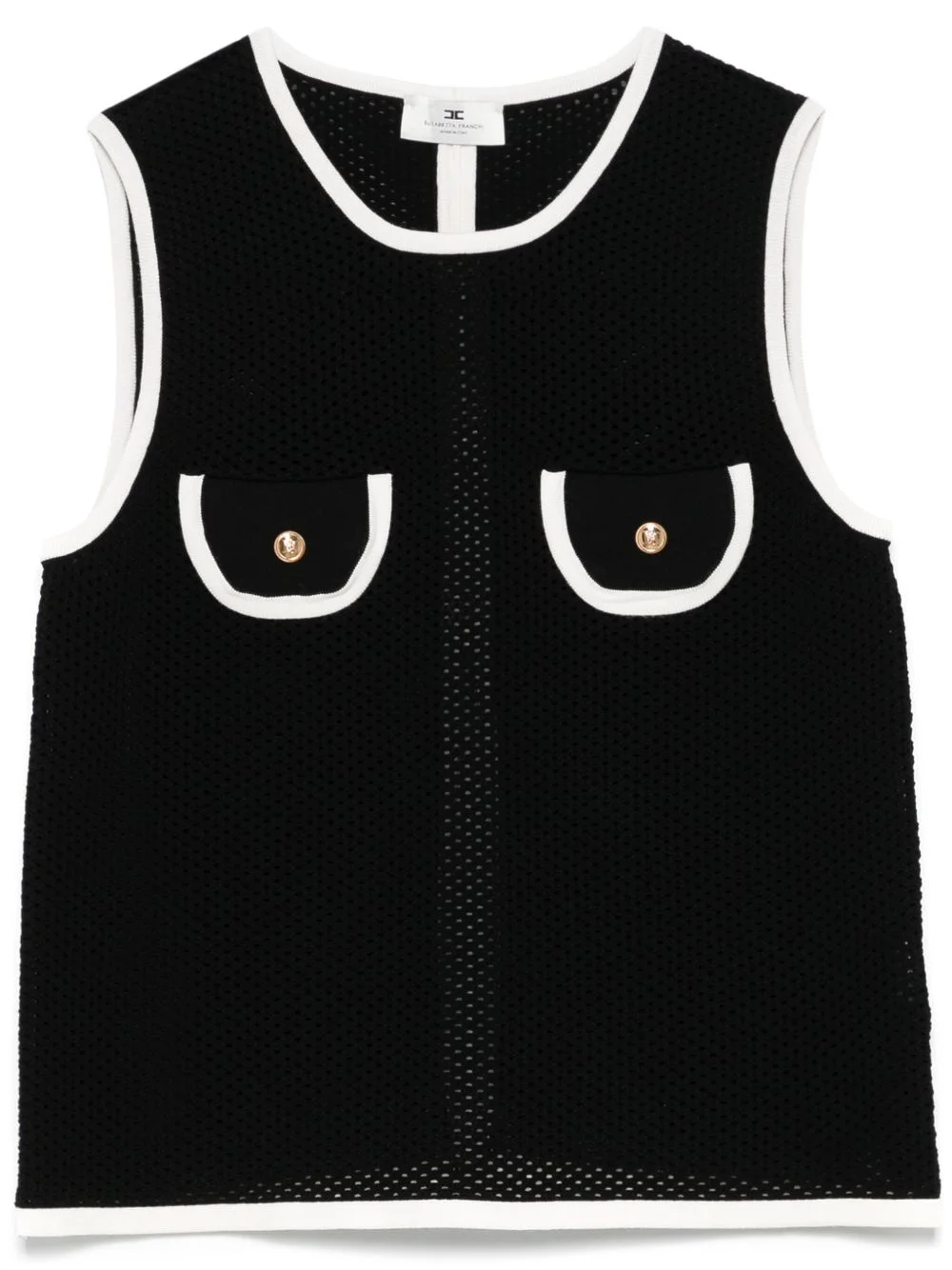 open-knit tank top Highlights - Black - Rear zip fastening - Faux pocket detail - Contrasting trim - Sleeveless Made in Italy Composition Viscose 70%, Polyester 30% SIZE & FIT Model measurements Height 5 ft 10 in(1.78 m) Bust/Chest 33.46 in(85 cm) Hips 36.22 in(92 cm) Waist 23.22 in(59 cm) FittingInformation Designed for a slim fit that sits just away from the body offering a close yet comfortable fit Made with a midweight knit, this piece offers some stretch Washing instructions Machine Wash
